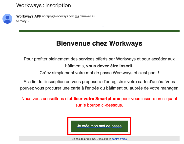 Vous recevrez un e-mail avec un lien pour créer votre mot de passe et vous connecter à app.workways.com.