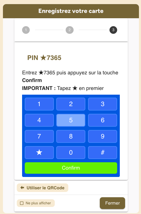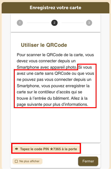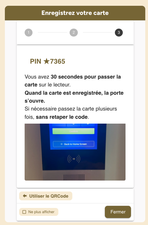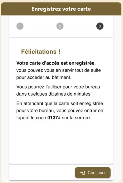Ensuite, vous serez guidé à travers les étapes pour enregistrer votre carte d’accès.
