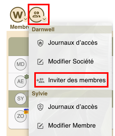Cliquez sur Inviter Membre dans le menu d’actions.