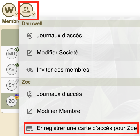Pour cela, dans l’application Workways, trouvez le membre en question et cliquez sur Enregistrer une carte d’accès pour… dans le menu d’actions, puis suivez les étapes affichées à l’écran.