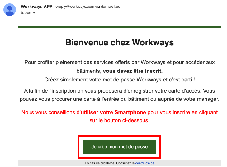 Si vous n’avez pas reçu le lien, vérifiez votre dossier de spam et assurez vous que votre responsable a communiqué la bonne adresse email.