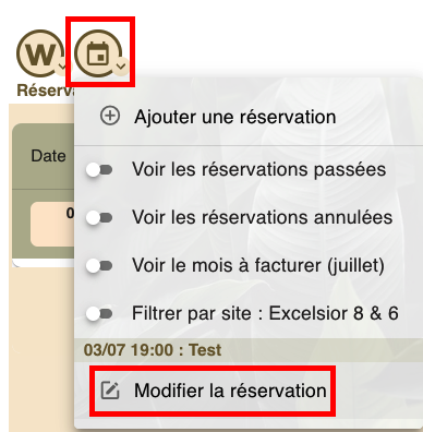 Vous pouvez aussi utiliser le menu des actions et sélectionner Modifier la réservation.