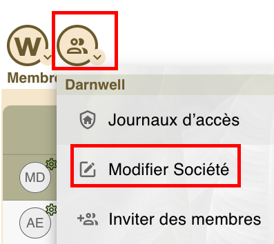 1. Dans le contexte Membres du menu W, sélectionnez Modifier Société.