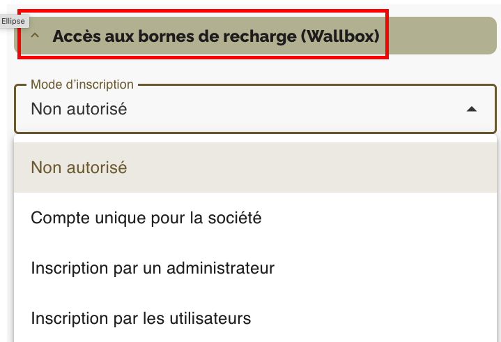 2. Dans la zone de saisie à droite, sélectionnez la zone Accès aux bornes de recharge Wallbox.